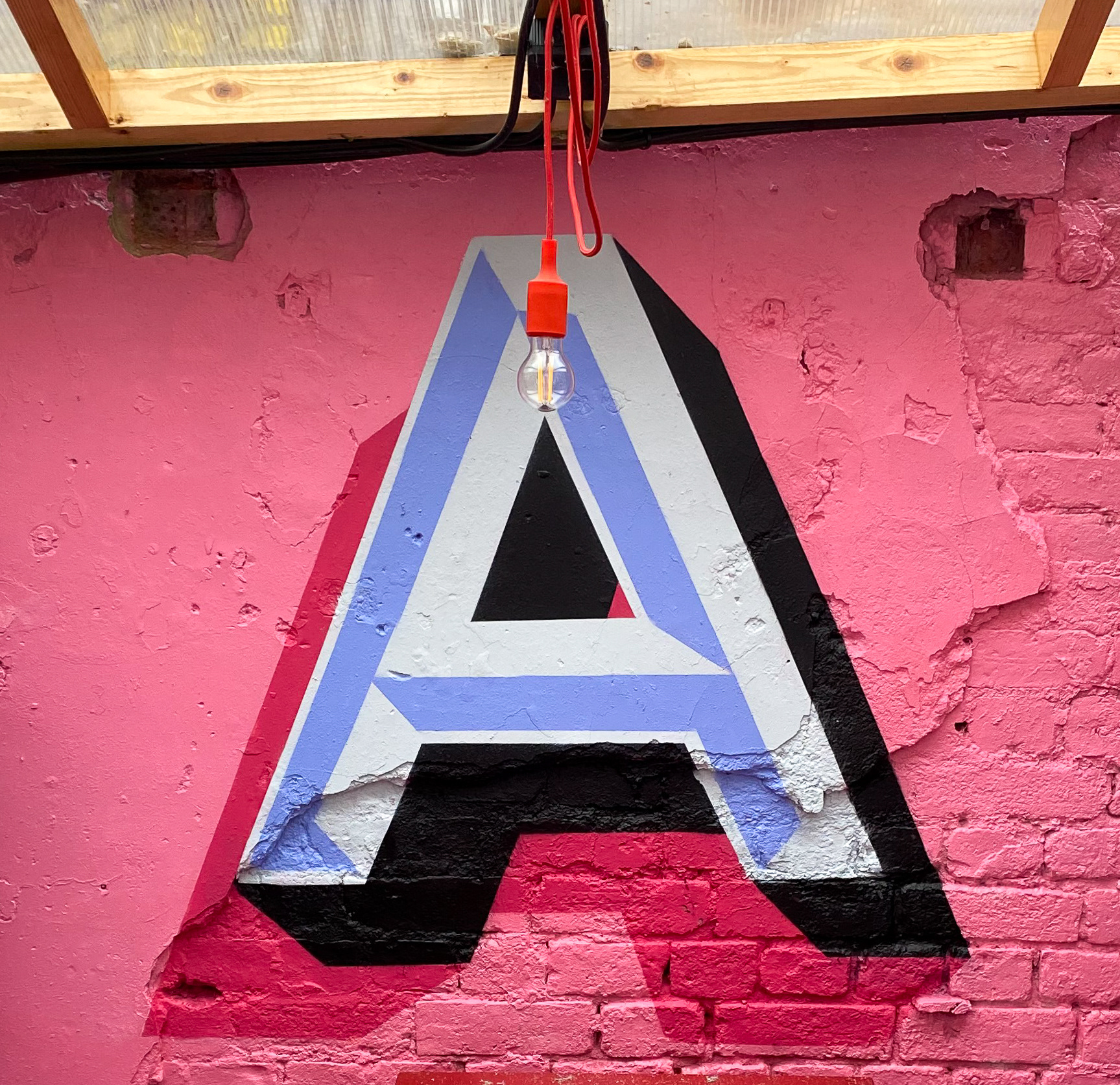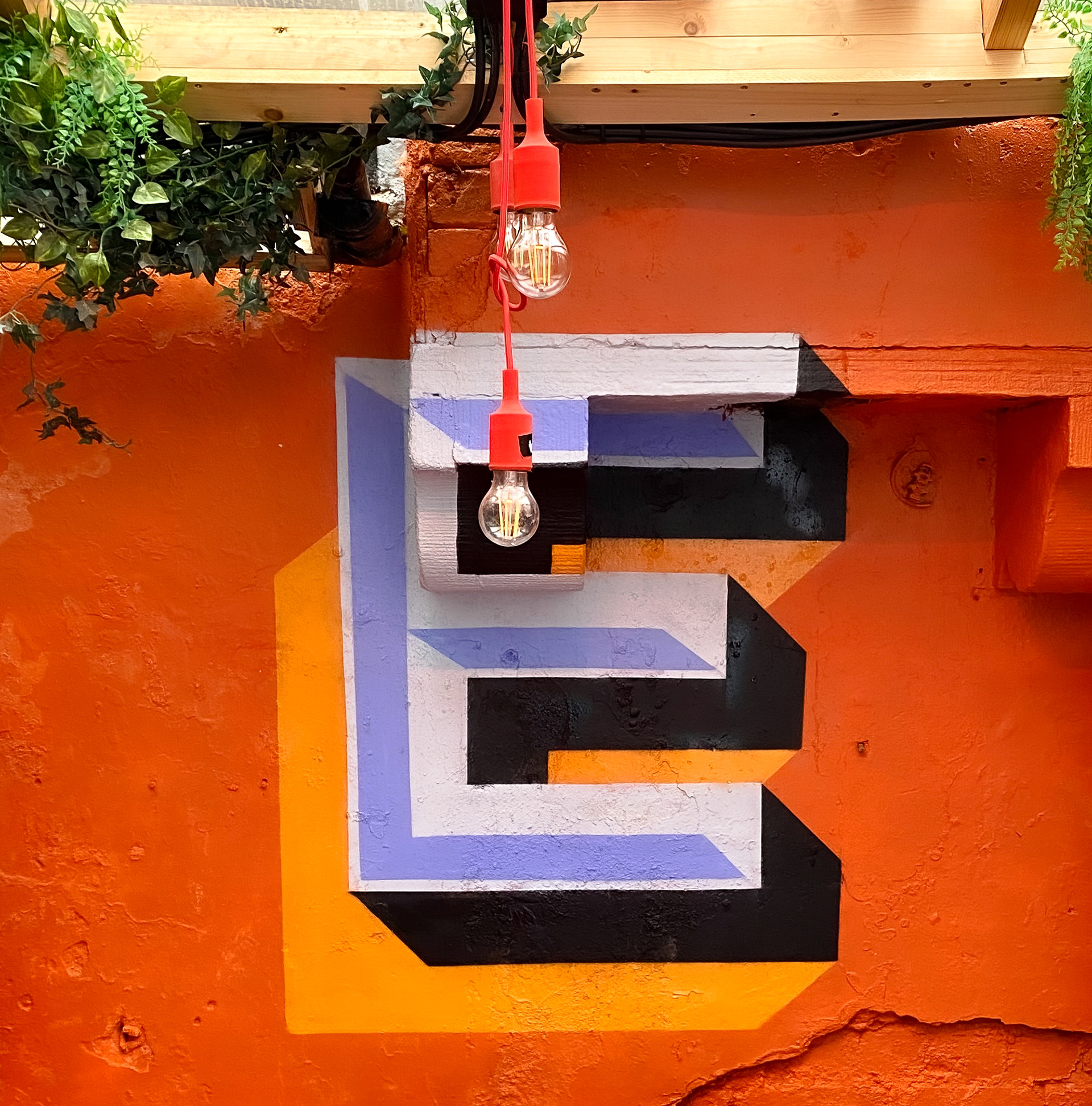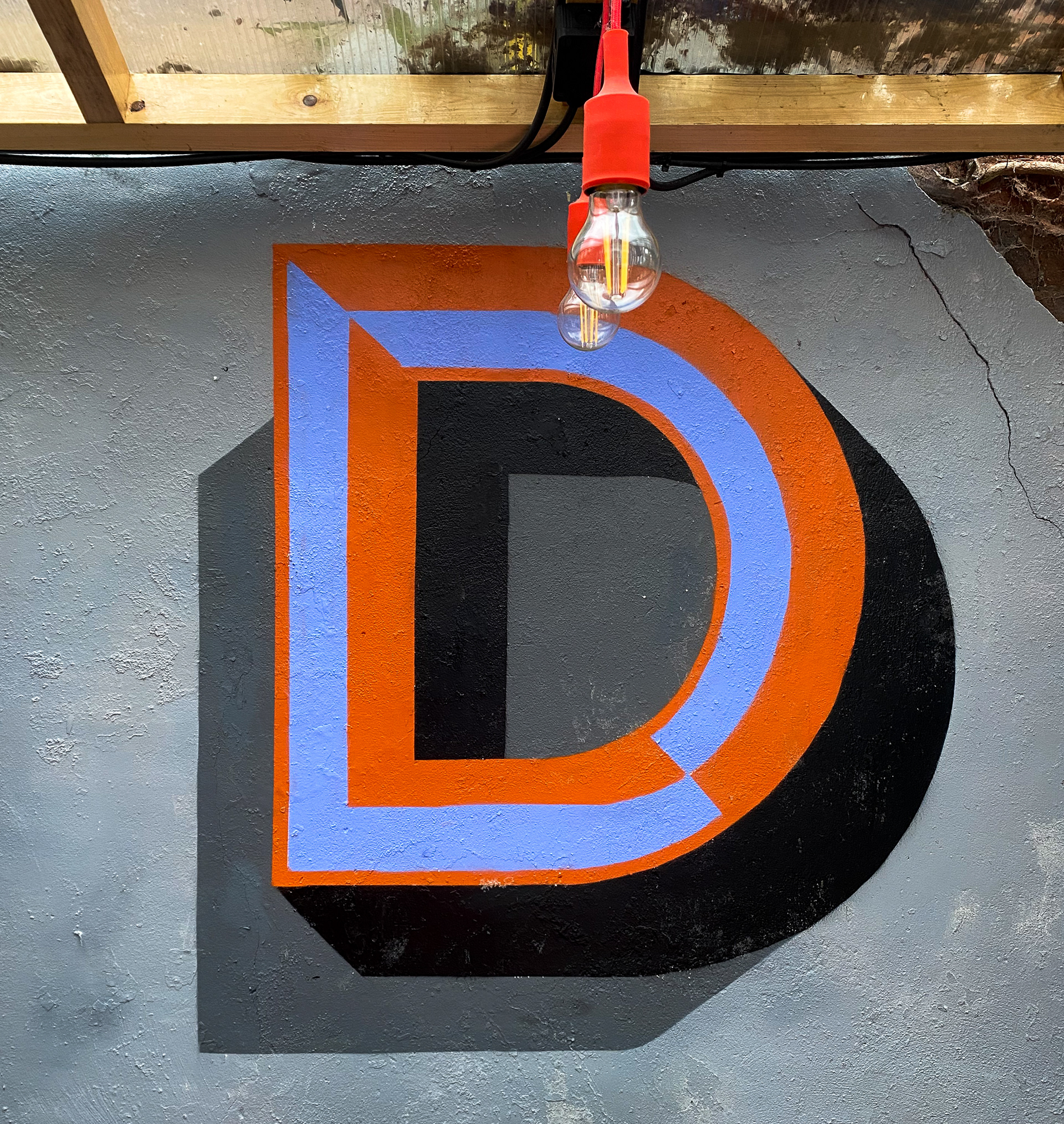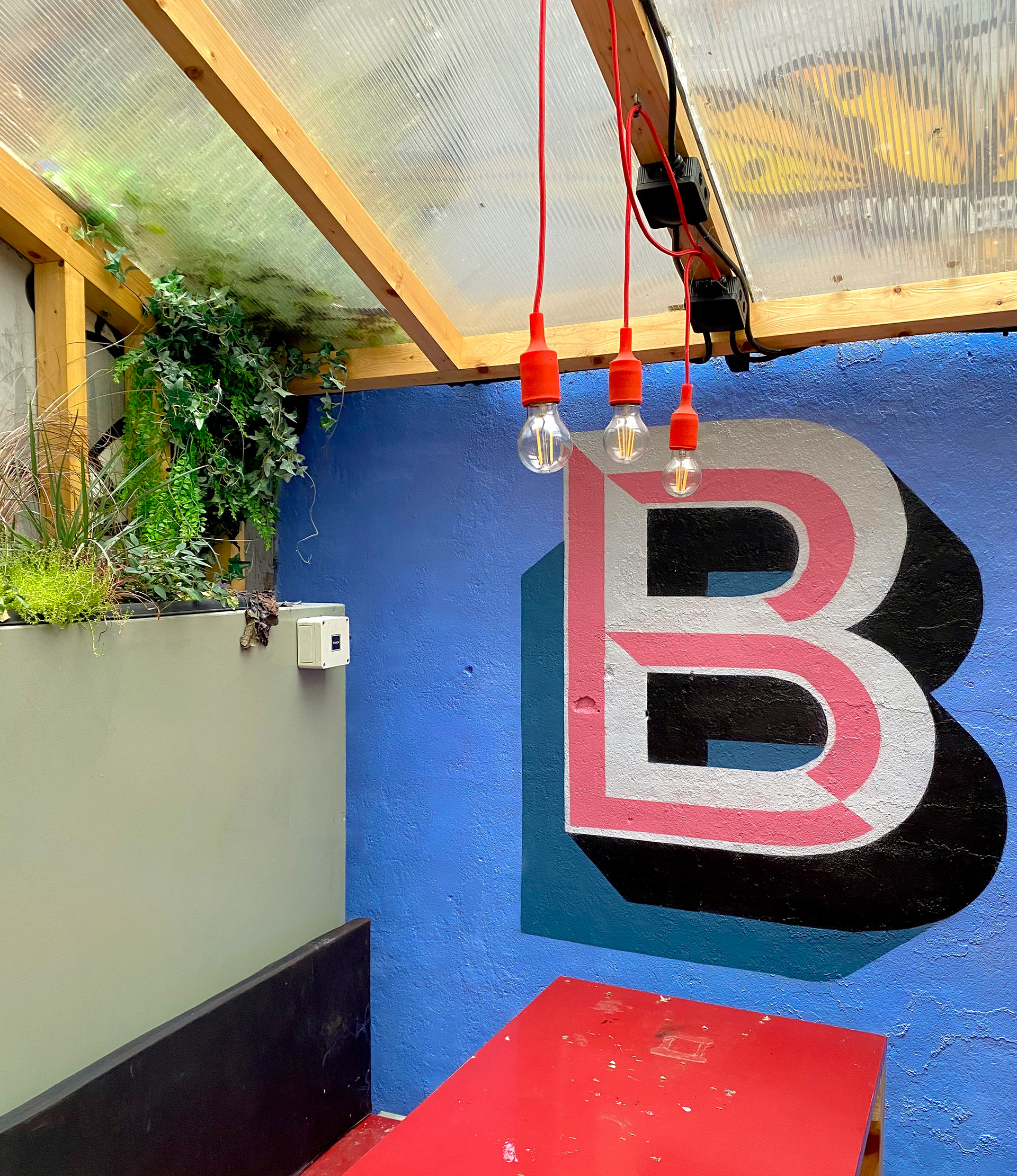Bodega Nottingham expanded their outdoor seating with 6 new outdoor booths, when invited to decorate their outdoor space it seemed fitting to introduce one of the six letters from 'Bodega' into each of the booths.