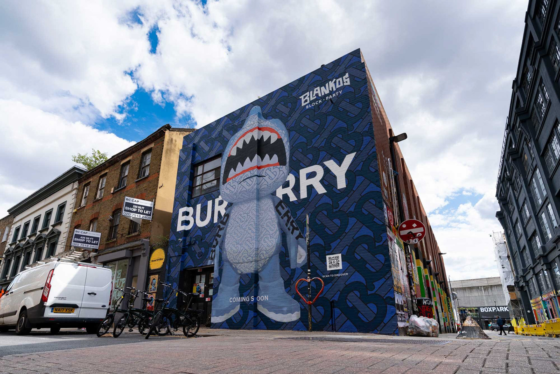 Blankos Block Party is a ground-breaking, multiplayer party game featuring digital vinyl toys known as Blankos that live on a blockchain, inherently providing players with proof of verified ownership and authenticity. To celebrate their collaborative drop with Burberry they commissioned a large scale mural.