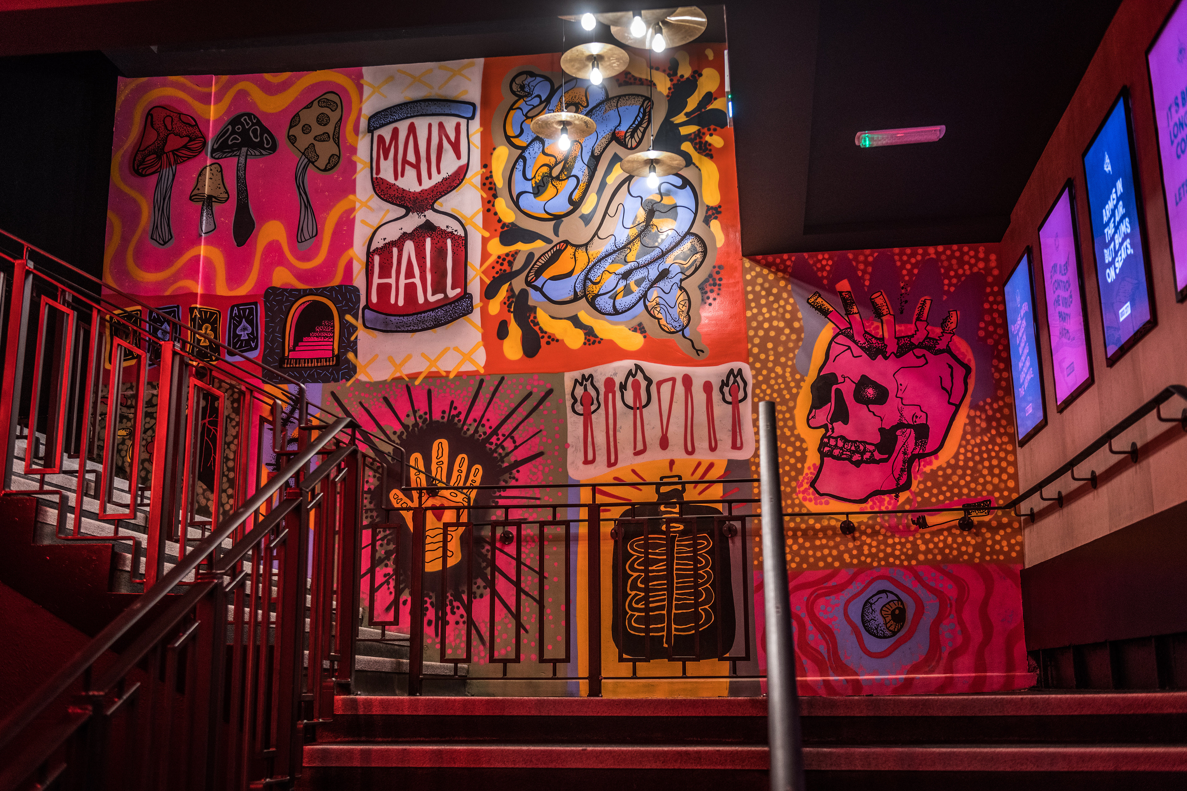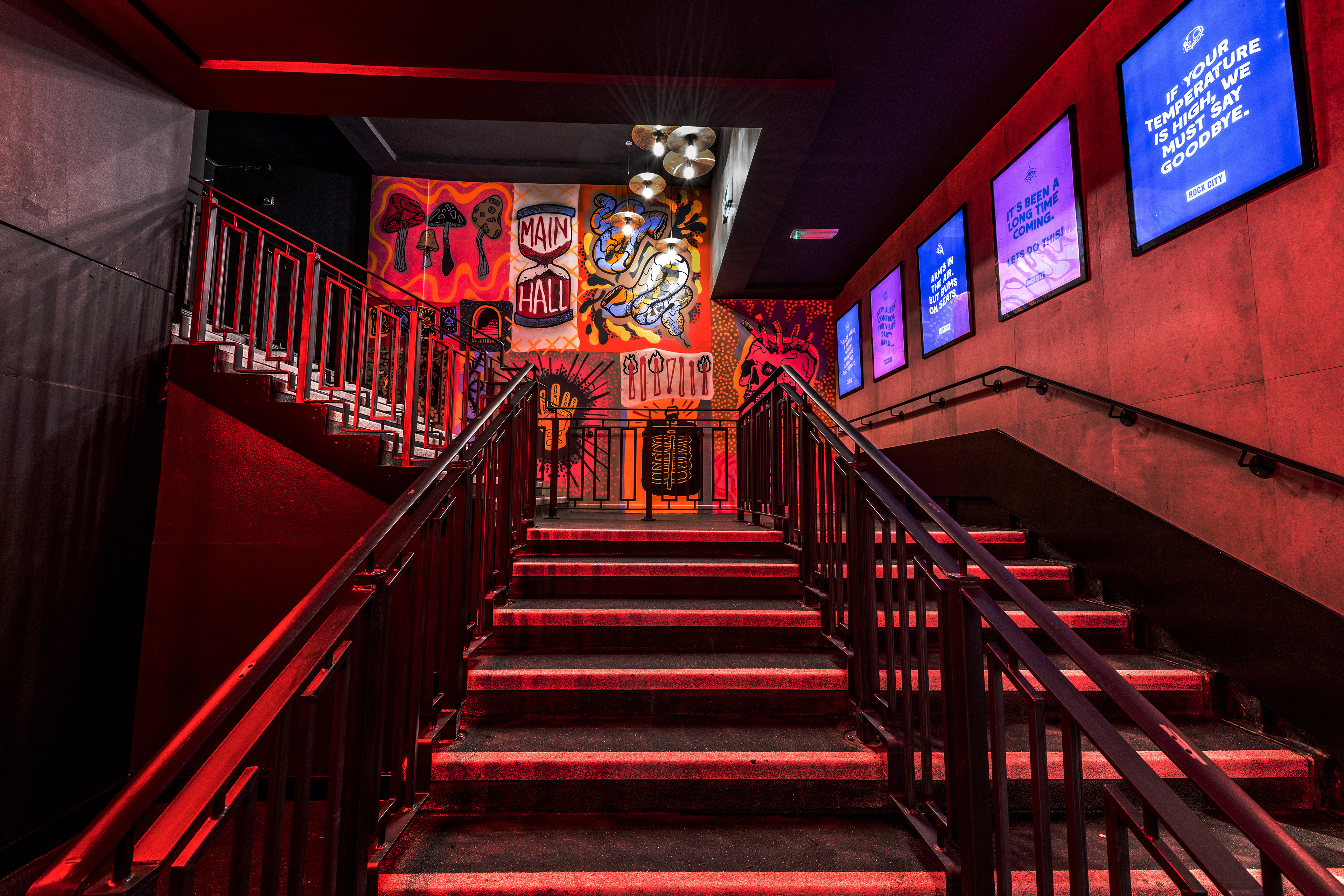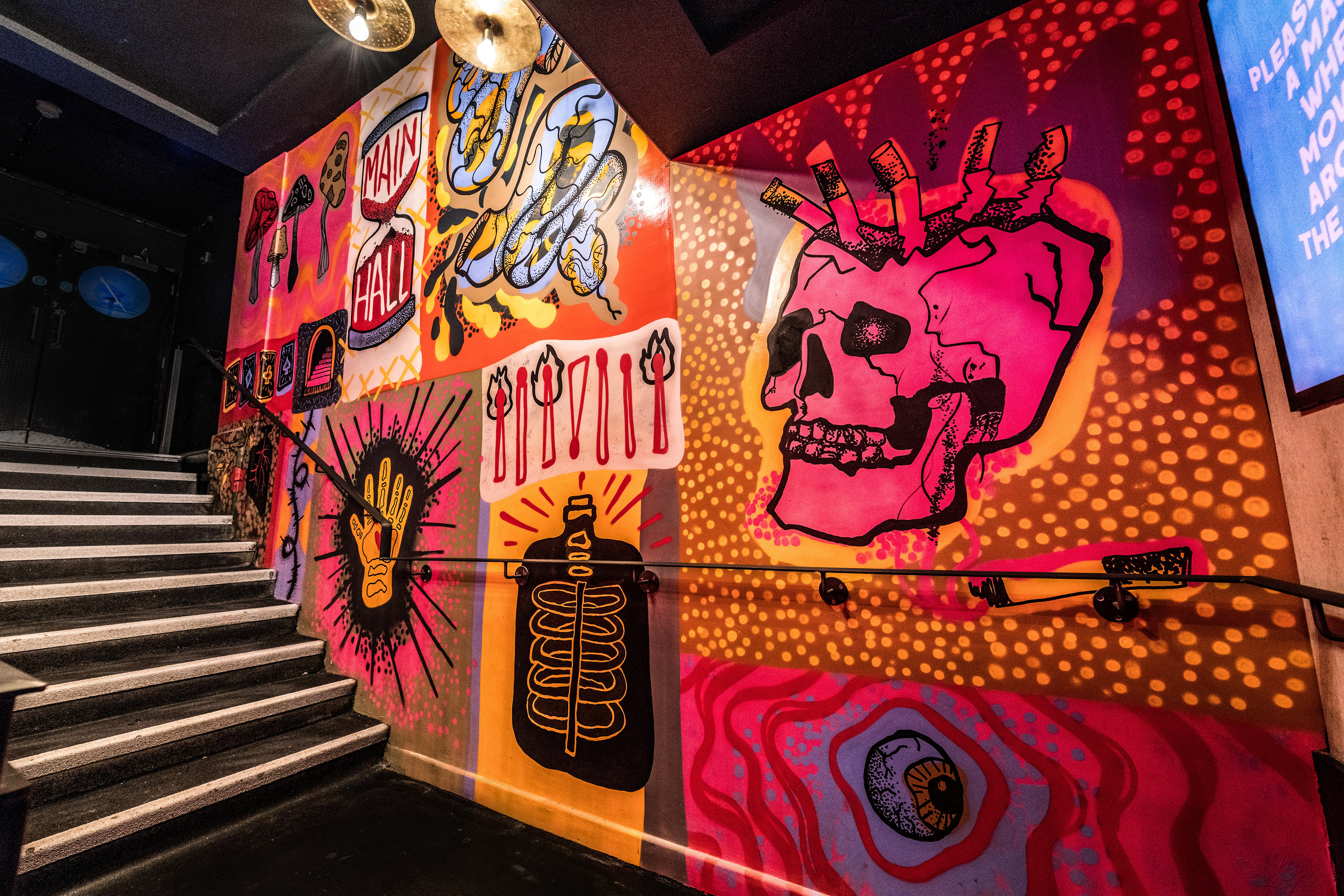 Rock City 'The UK's best live venue & club' underwent a huge transformation in their entrance, I was invited down to help bring to life illustrations from Christina Bentley on their stare way.