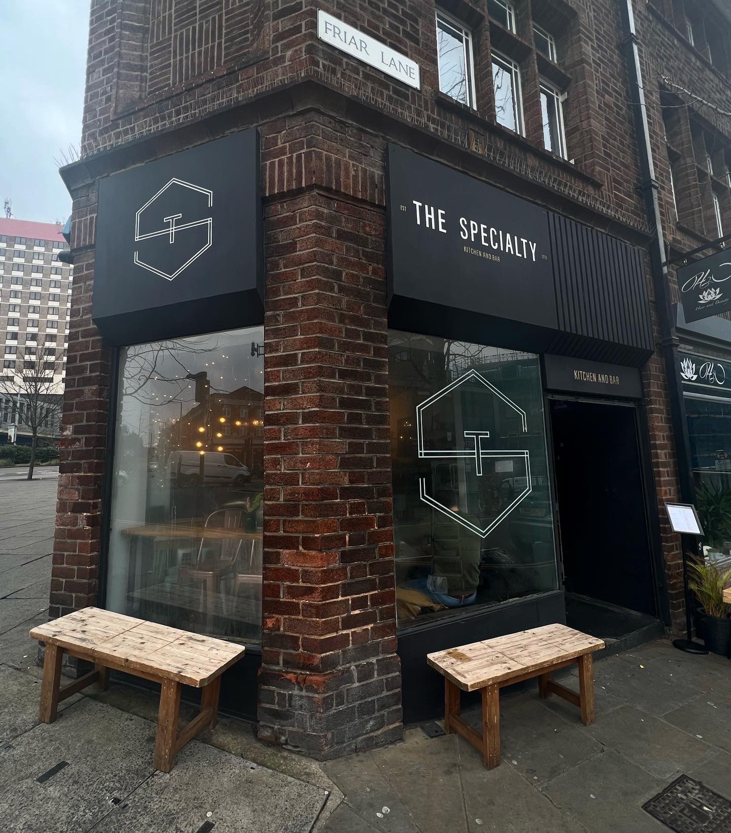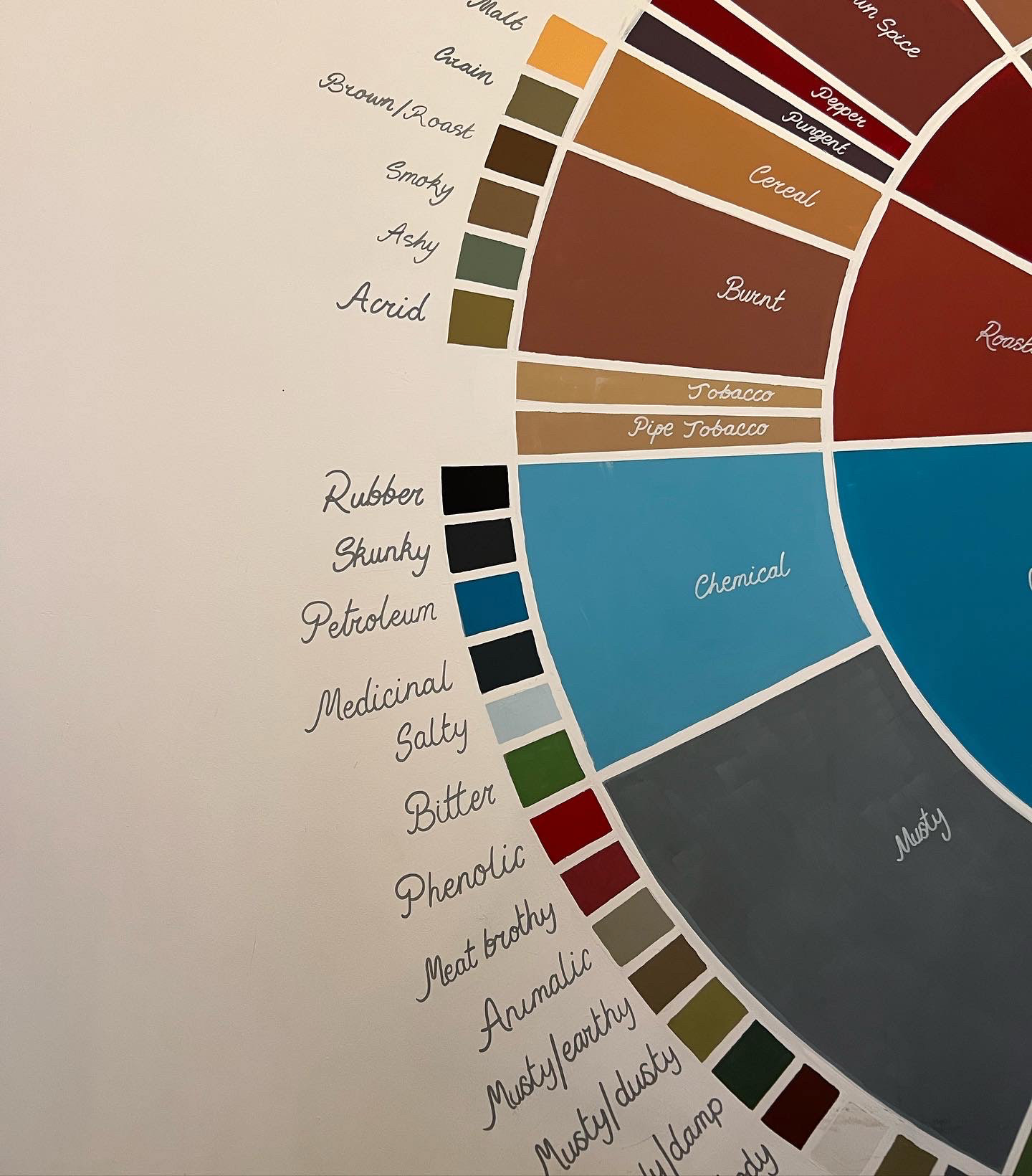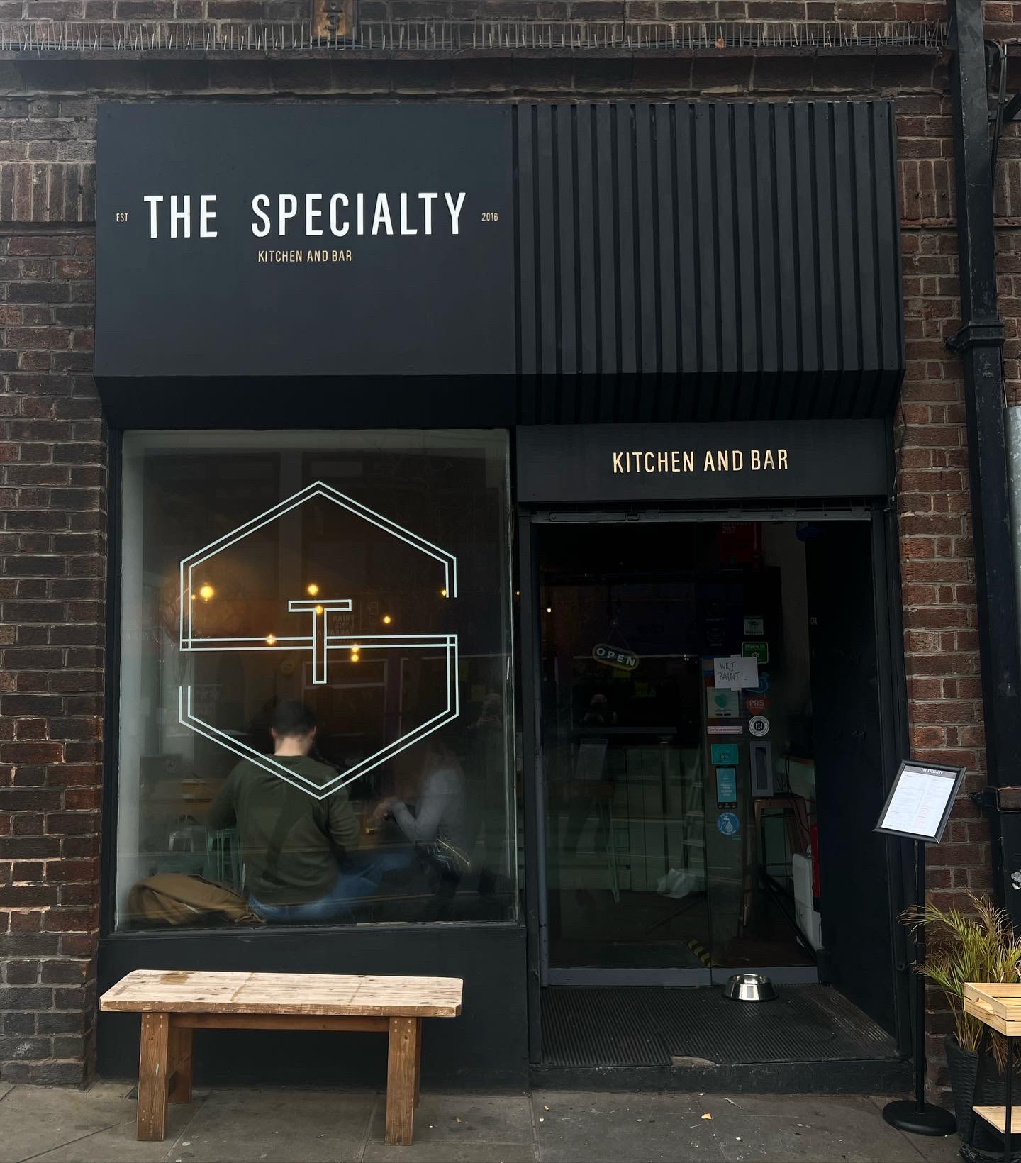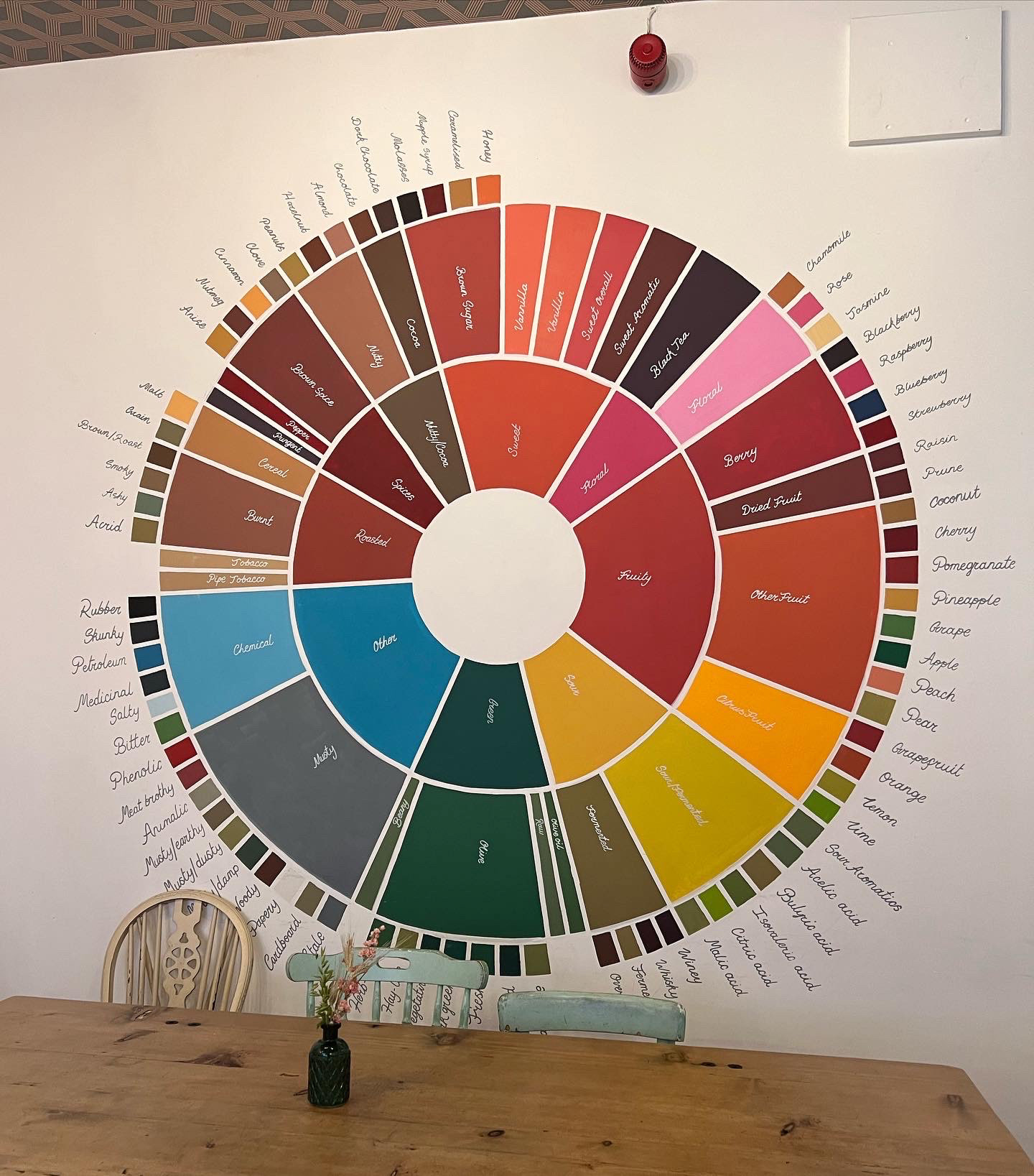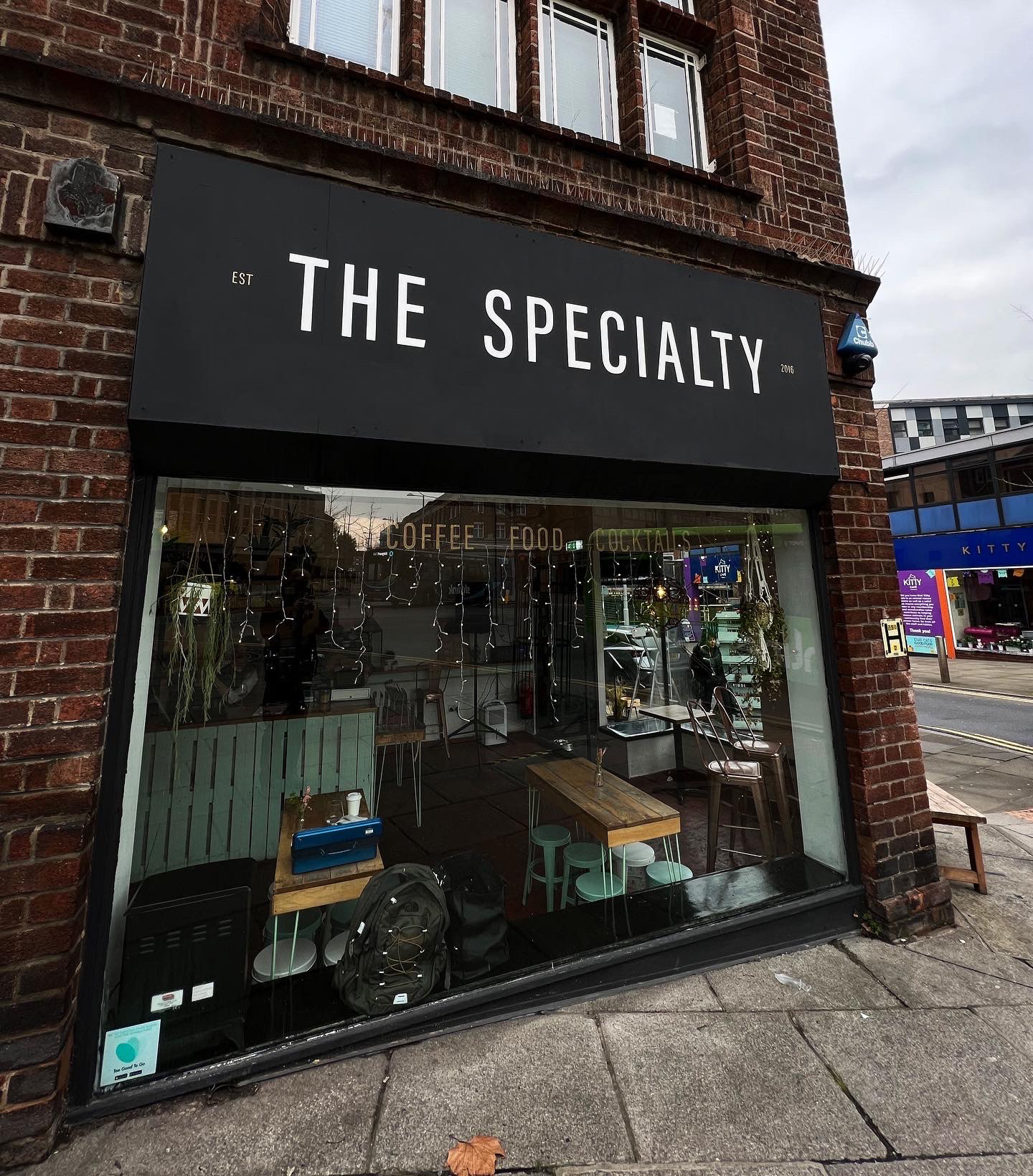 The Specialty Coffee Shop team invited me to install their new branding. This project saw hand painted graphics & typography installed onto facias and windows. Whilst on site we finished with adding some fresh paint to their unique coffee tasting flavour wheel which we worked on a few years earlier.